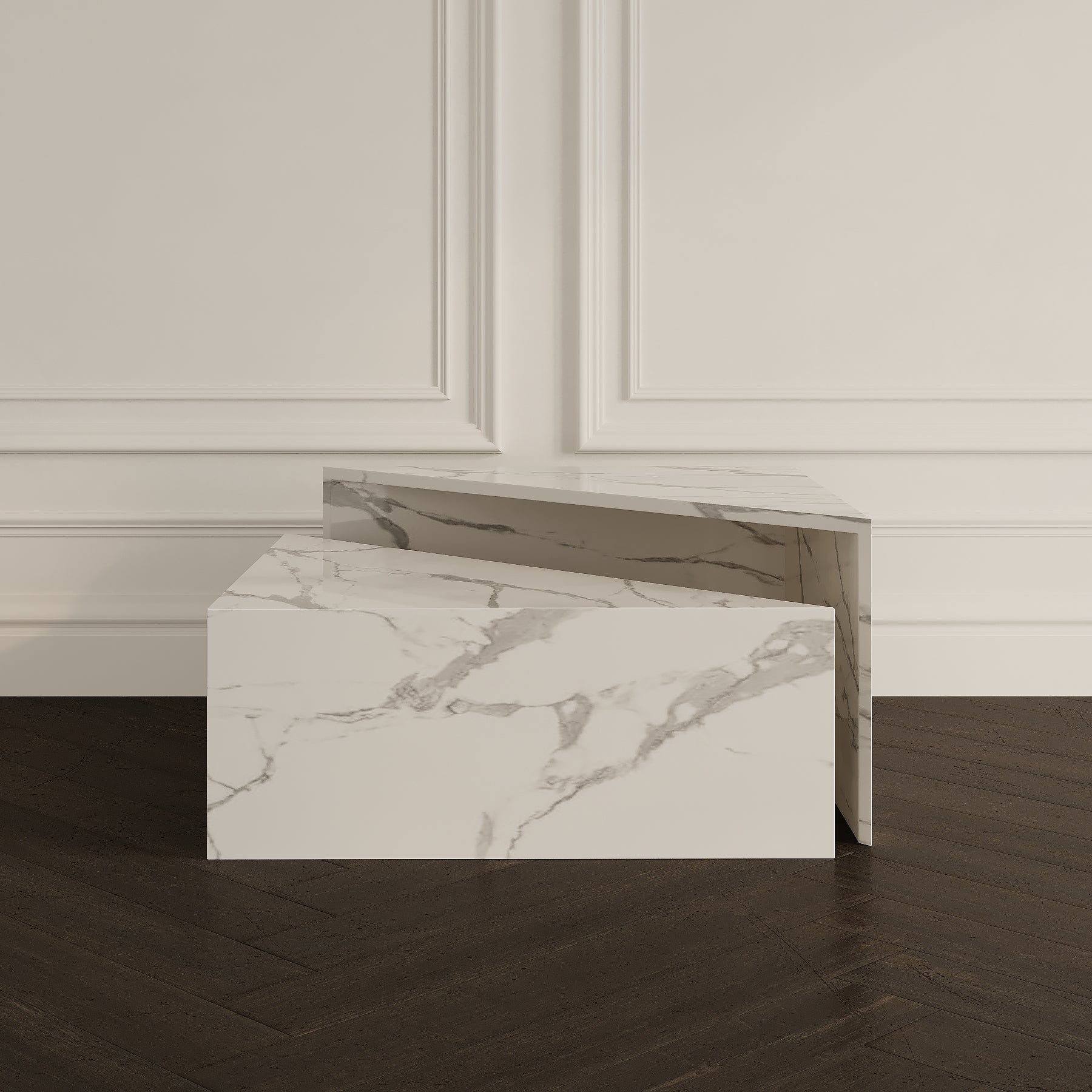 Dynamic and contemporary, The Bliss Coffee Table features a two-tiered design that creates a sense of movement and depth. The asymmetrical surfaces, with one tier set higher than the other, highlight the natural veining and elegance of the stone. Choose between a honed or polished finish, complemented by either a straight edge for modern definition or a half bullnose edge for subtle softness. Perfect for adding a sculptural touch to any interior.