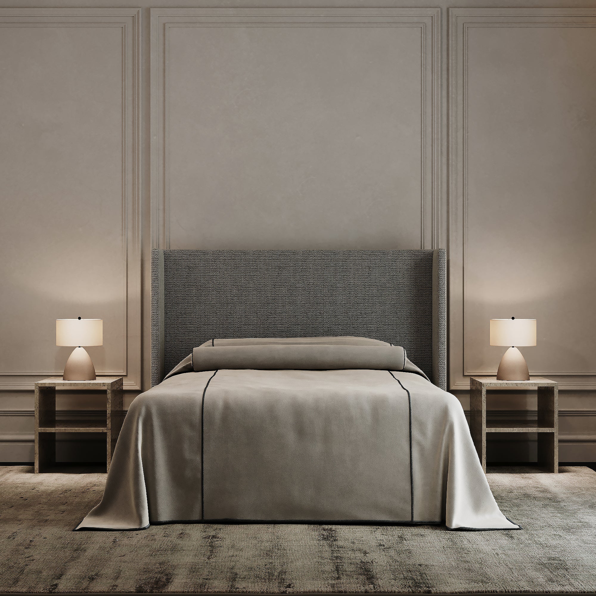 Sophisticated and timeless, The Drift WInged Headboard offers a perfect blend of form and function. The elegant winged design creates a sense of enclosure, bringing a cosy, tailored feel to your bedroom while elevating its overall aesthetic.
