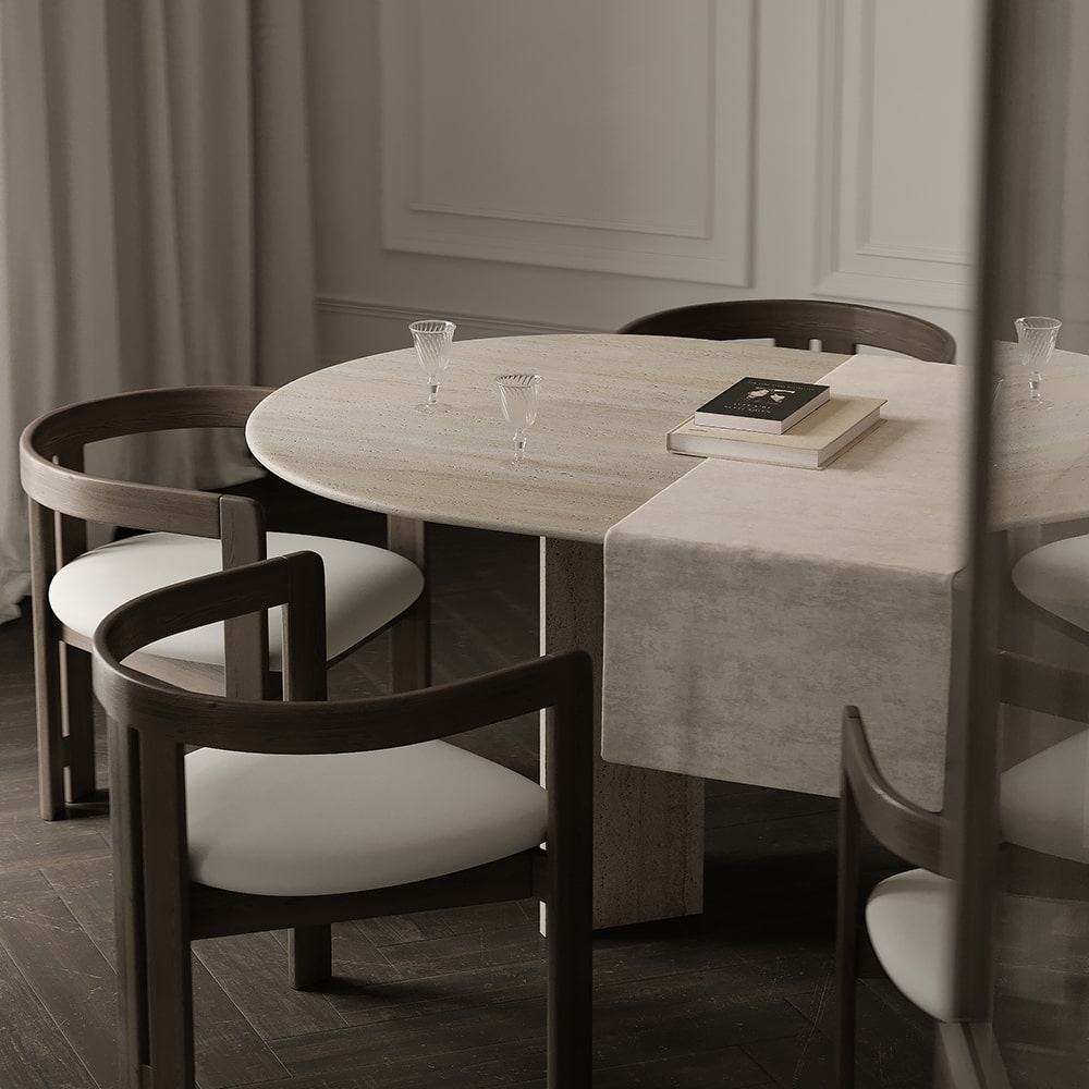 Choose from our carefully curated selection of natural stones, each with unique veining and character, to create a table that suits your space perfectly. Customise further with a choice of finishes—honed for a soft, matte texture or polished for a high-gloss shine.
