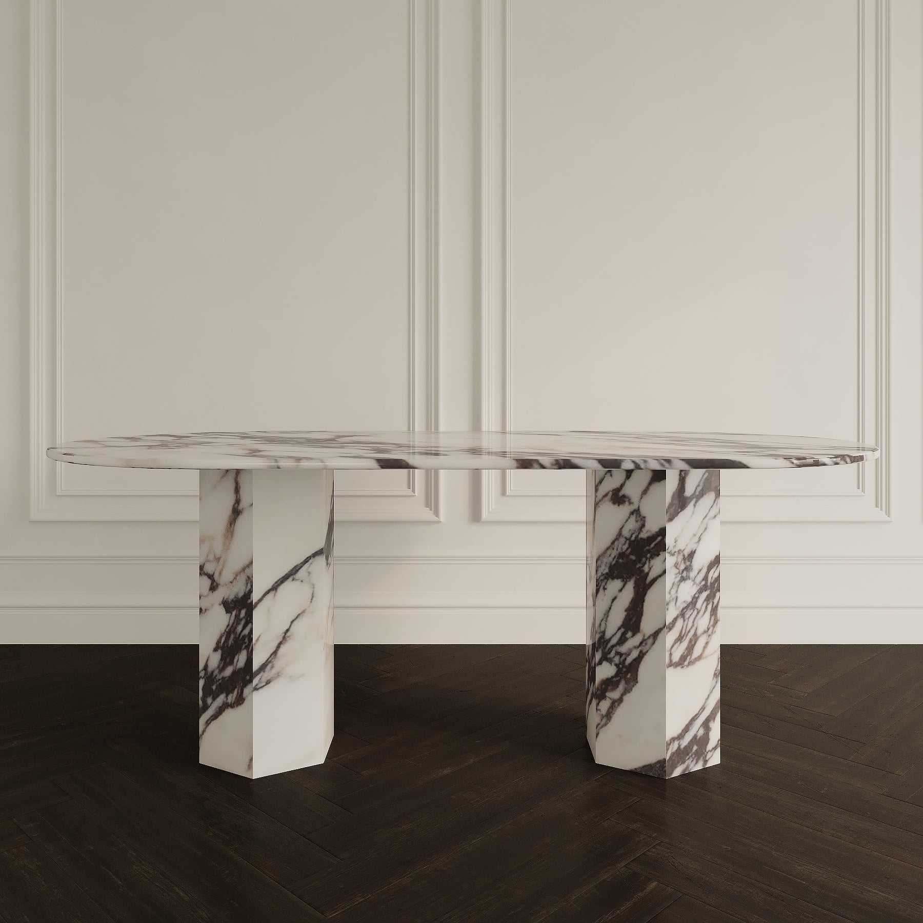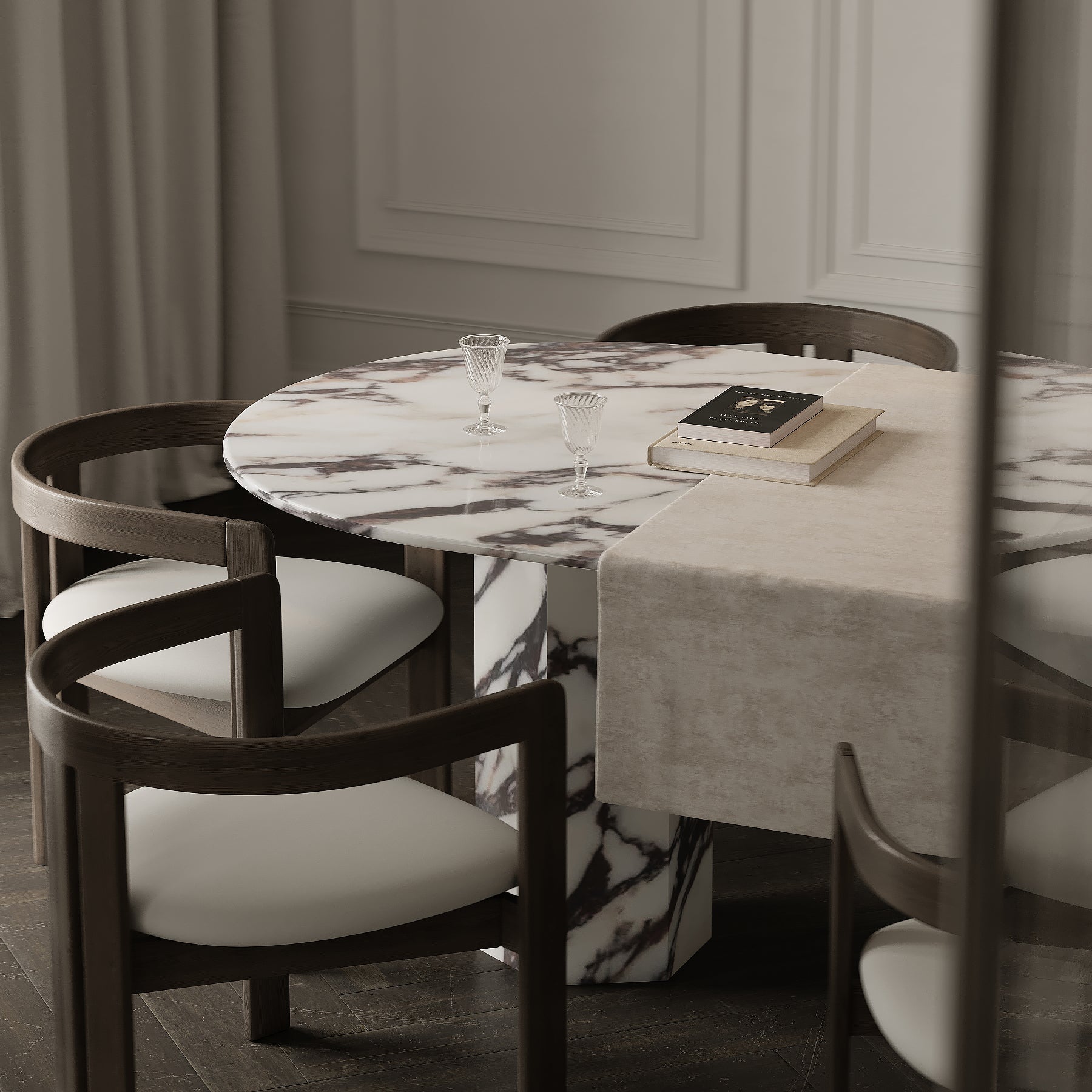 Choose from our carefully curated selection of natural stones, each with unique veining and character, to create a table that suits your space perfectly. Customise further with a choice of finishes—honed for a soft, matte texture or polished for a high-gloss shine.