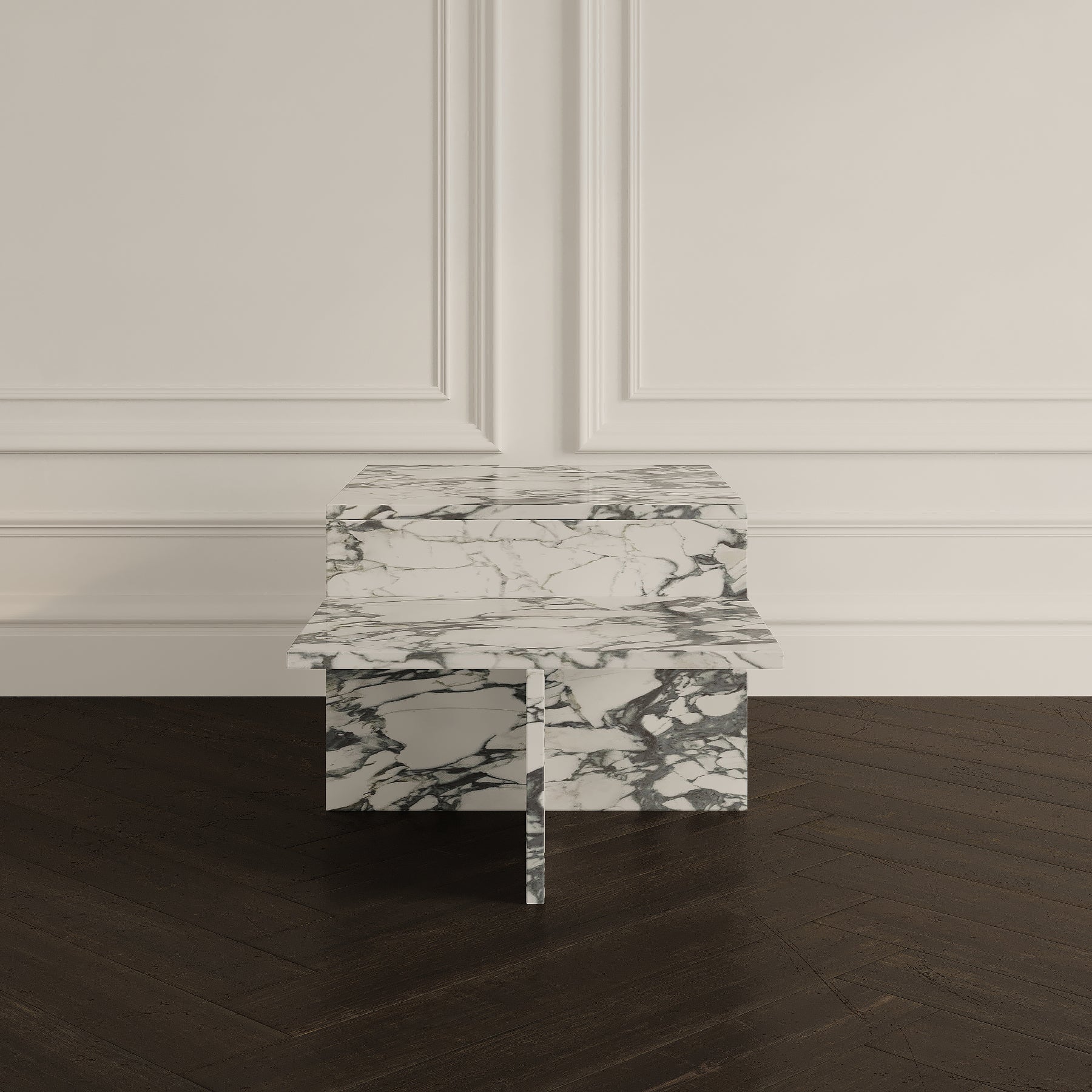 A masterpiece of geometric design, The Rome Coffee Table features a unique layered structure. Two rectangular platforms are arranged at differing heights, creating a stepped, sculptural effect. The vertical supports intersect at the centre in a cross-like formation, offering both stability and striking visual appeal. Available in a honed or polished finish, with either a straight or half bullnose edge, this table adds contemporary artistry to any living space.