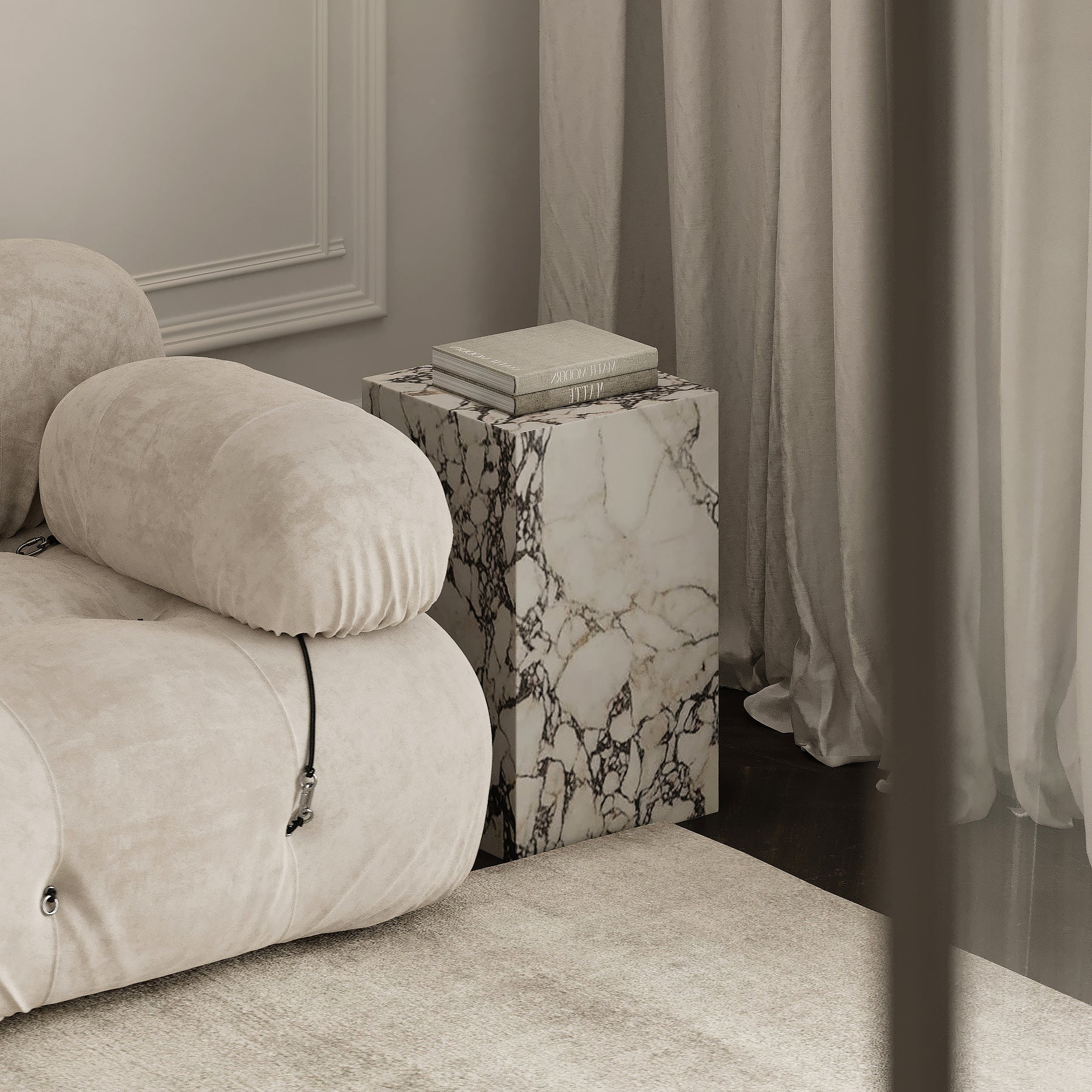Sleek and sculptural, The Savoy Side Table makes a bold statement with its monolith-like silhouette and slender proportions. The clean, uninterrupted lines highlight the natural beauty of the stone, from delicate veining to organic tonal variations. Available in a honed or polished finish, with the option of a straight edge for a contemporary aesthetic or a half bullnose edge for softer appeal. Ideal for smaller spaces or as a refined accent beside chairs or sofas.