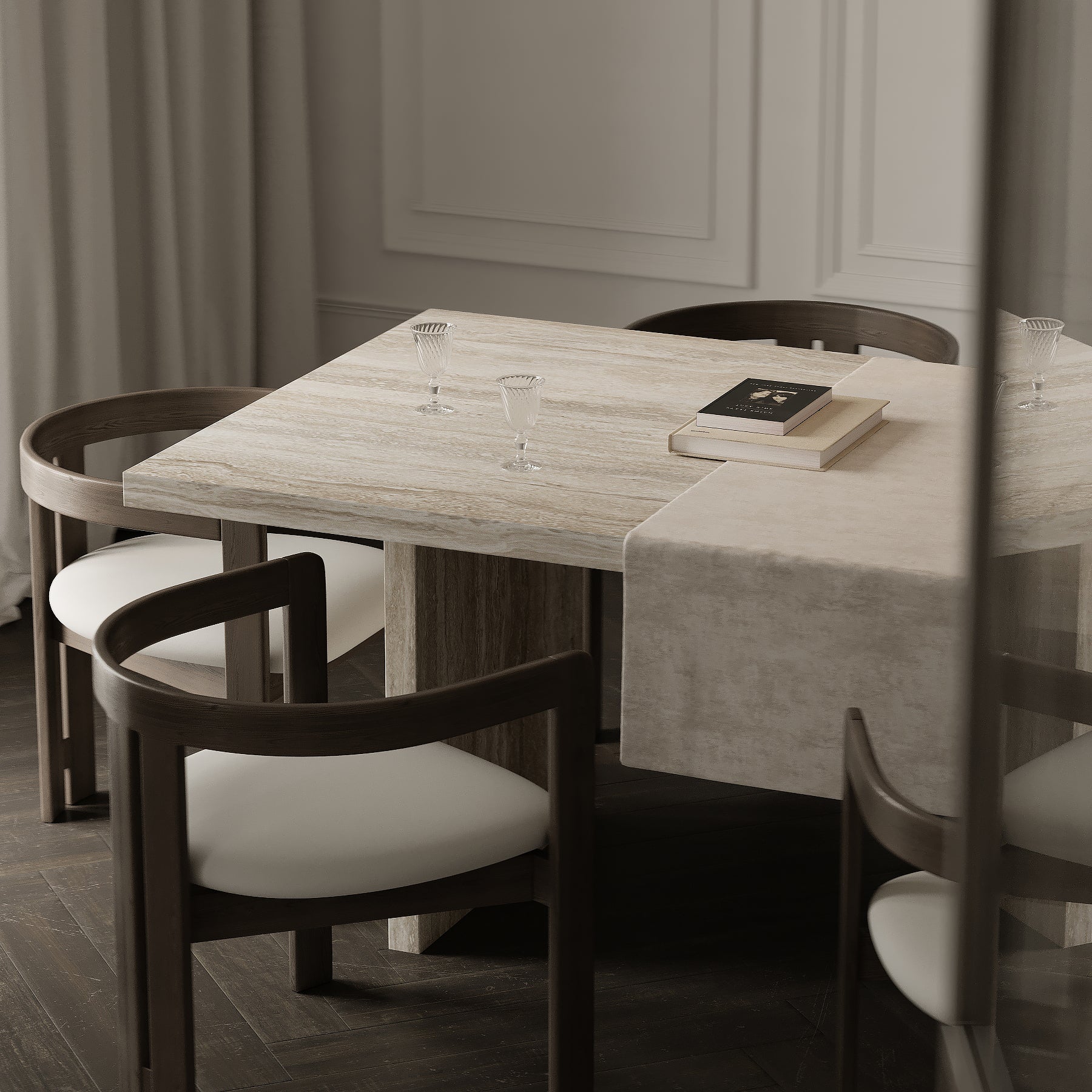 Choose from our carefully curated selection of natural stones, each with unique veining and character, to create a table that suits your space perfectly. Customise further with a choice of finishes—honed for a soft, matte texture or polished for a high-gloss shine.