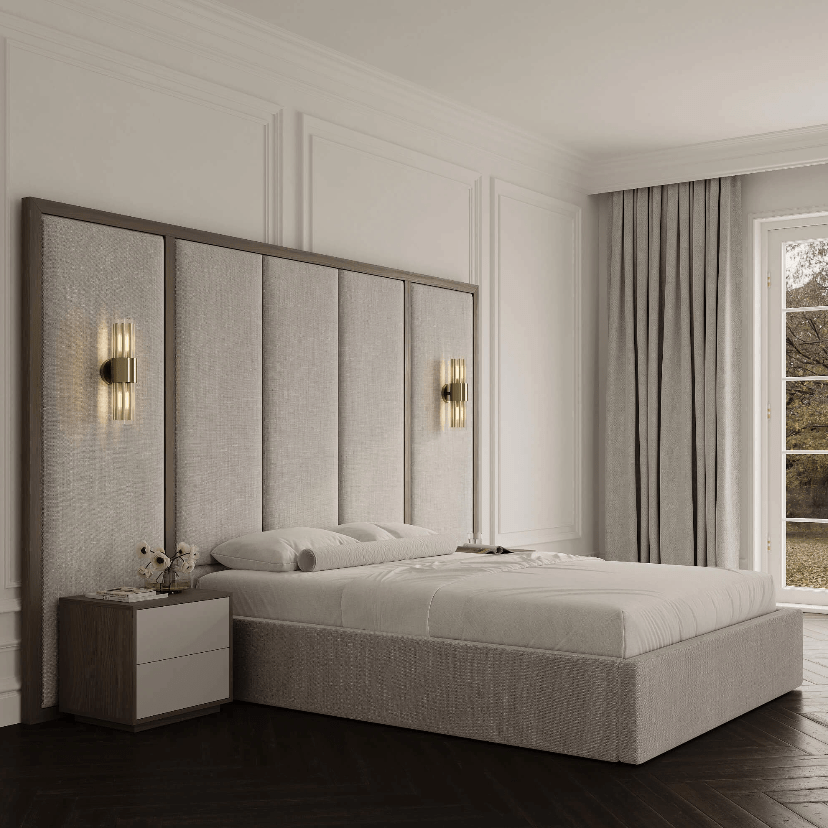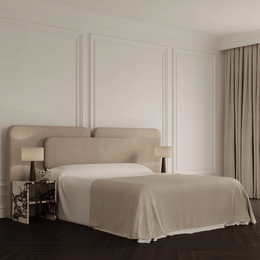 Available in a carefully curated selection of luxurious fabrics and tones—from versatile neutrals to rich, tactile hues—this headboard can be customised to perfectly complement your space. The plush upholstery ensures both comfort and durability, making it a standout feature that enhances your bed’s aesthetic.